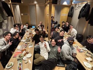卒業論文発表の後には、飲み会も行われました。リラックスした雰囲気の中で、楽しい時間を過ごすことができました。